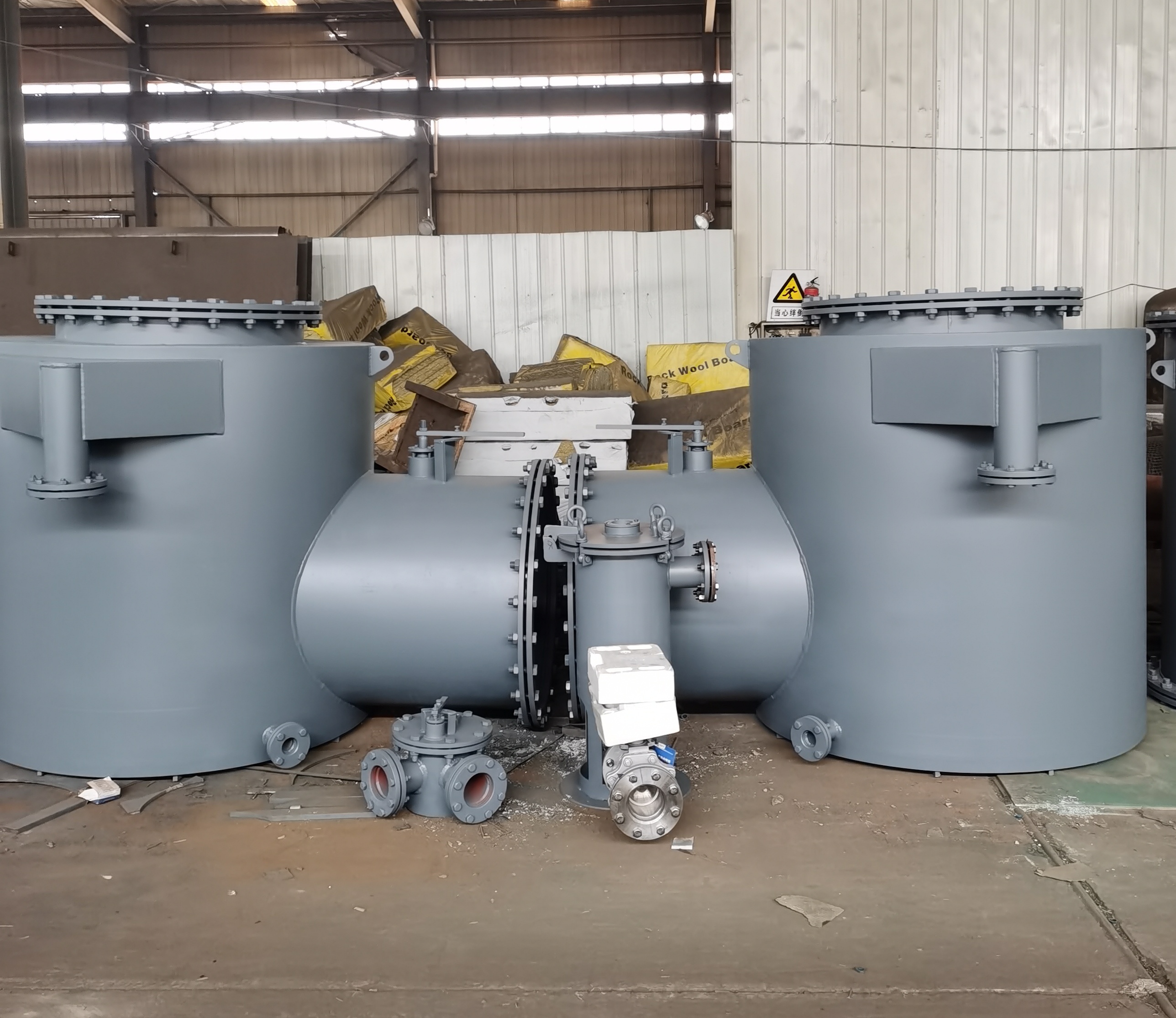 4)滤网与凝汽其、器循环水管进口间距保持100mm以上,并在滤网与凝汽器之间加装补偿节,便于检修装拆和补偿之用。